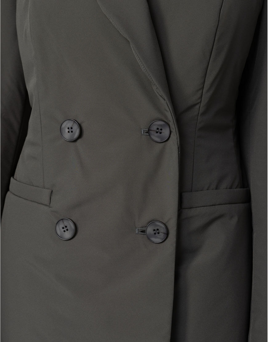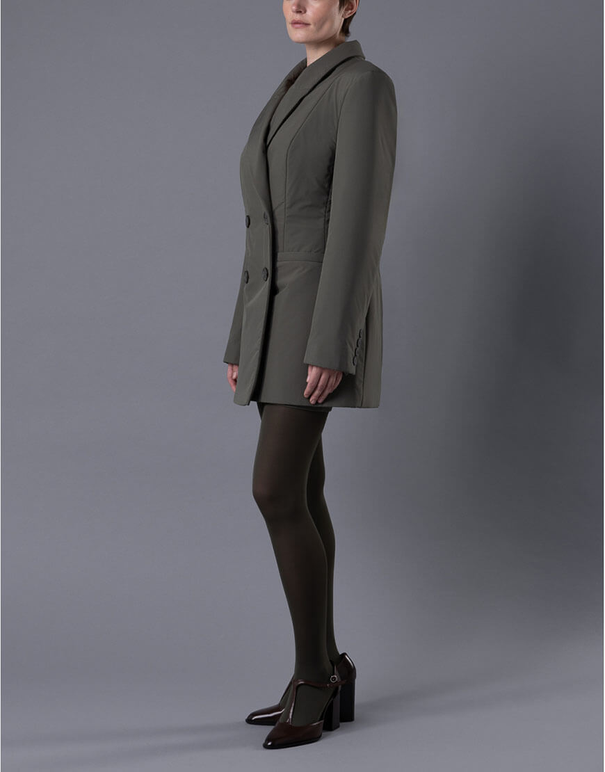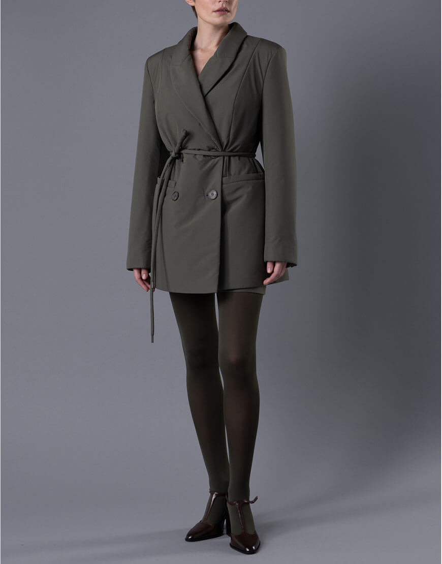 Коротке пальто-пуховик з плащової тканини. Модель має вточний рукав та посадку по фігурі. Простий, лаконічний силует додасть жіночності вашим аутфітам.