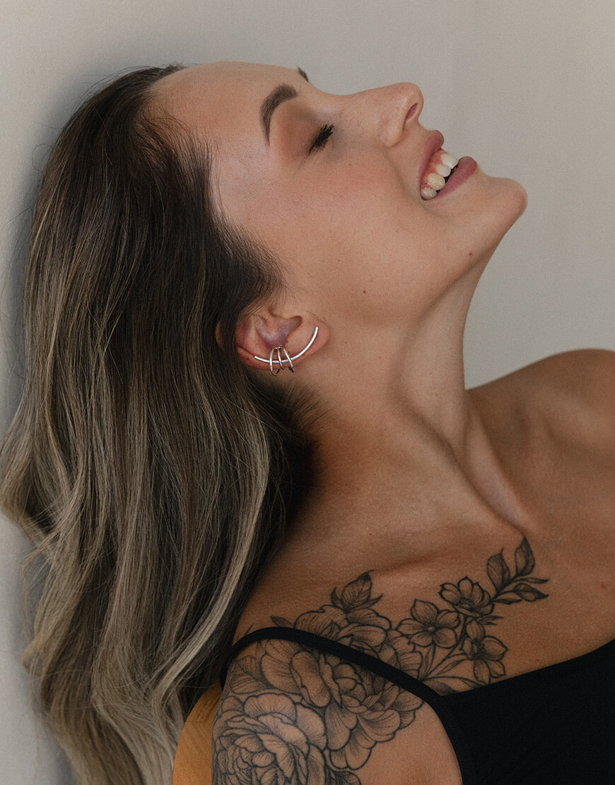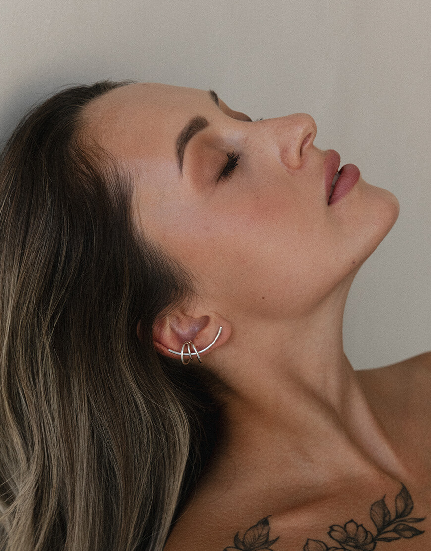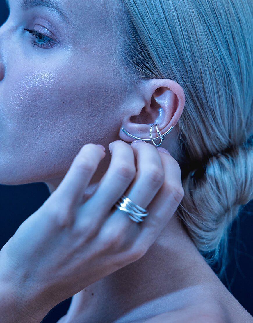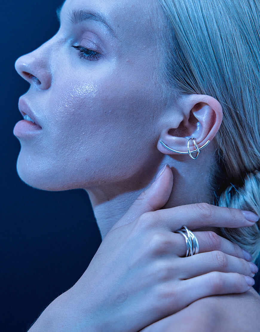 Сет “Муза” складається з двох асиметричних каффів на середину вушка та двох довгих сережок. Кожен виріб можна міксувати один з одним, або носити окремо. Набір не потребує додаткових проколів, окрім стандартних в мочці
