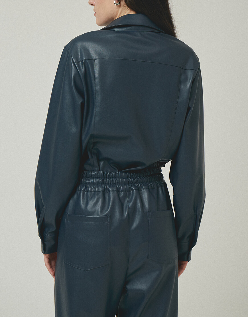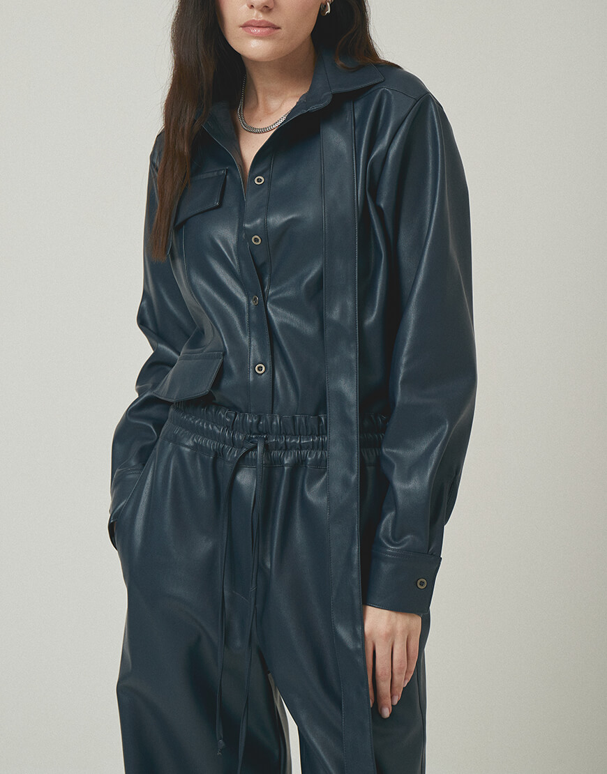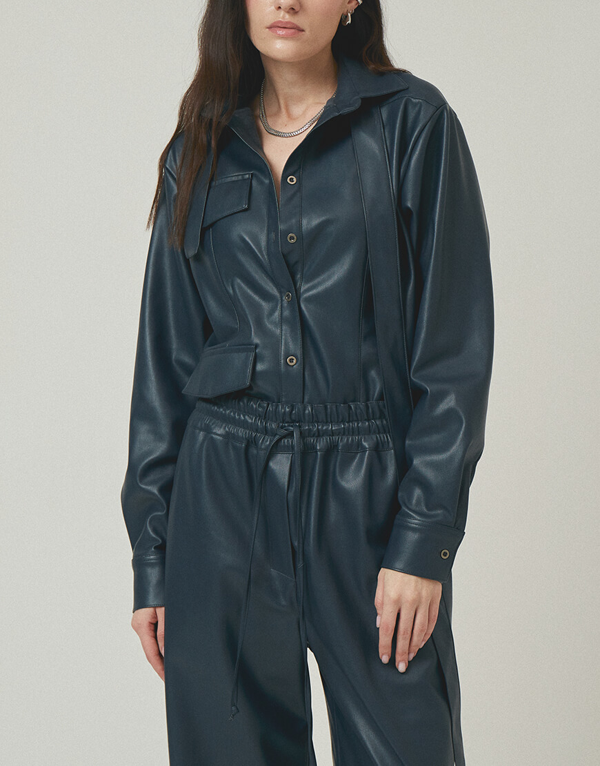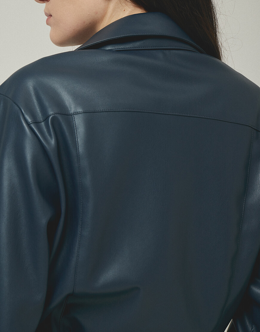 Напівприталена сорочка з еко-шкіри з клапанами
