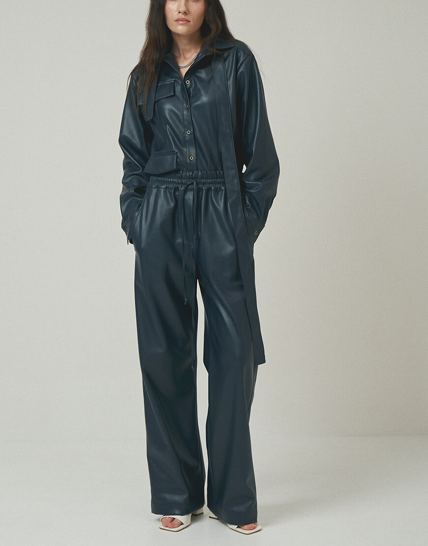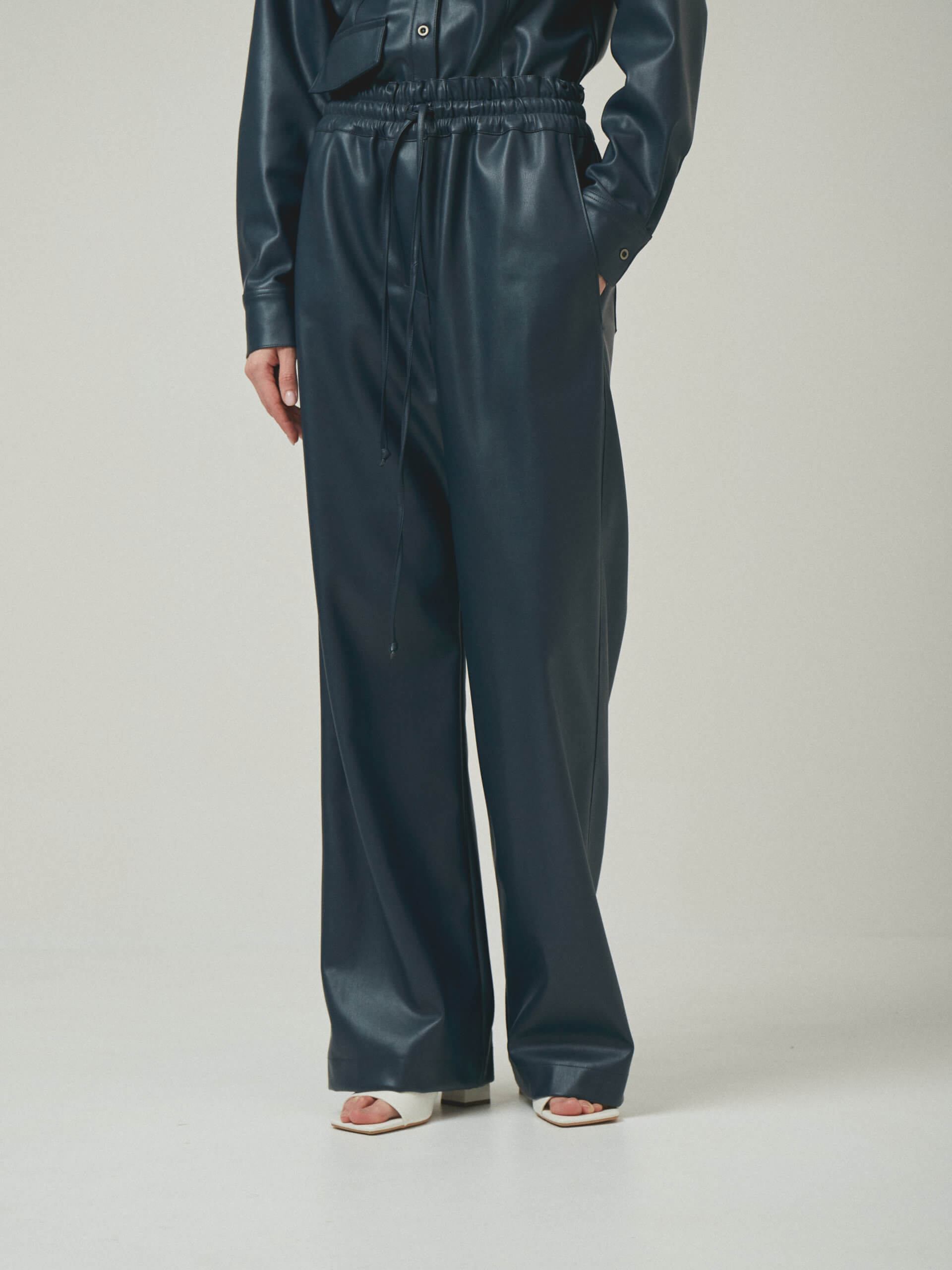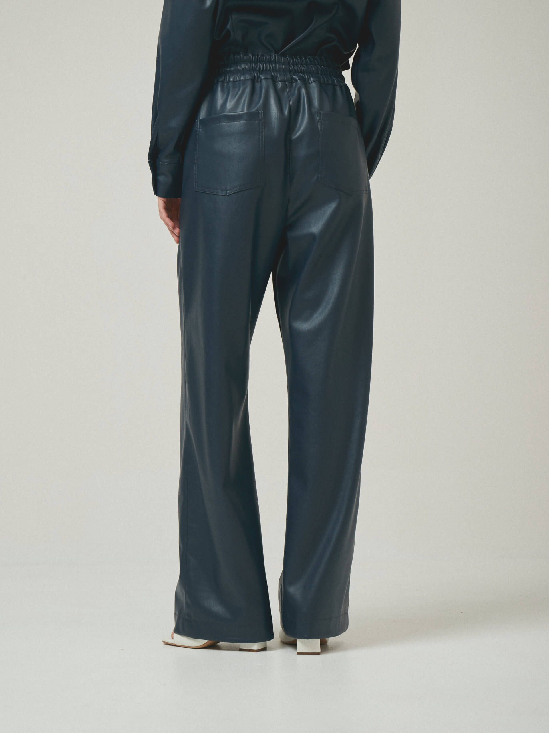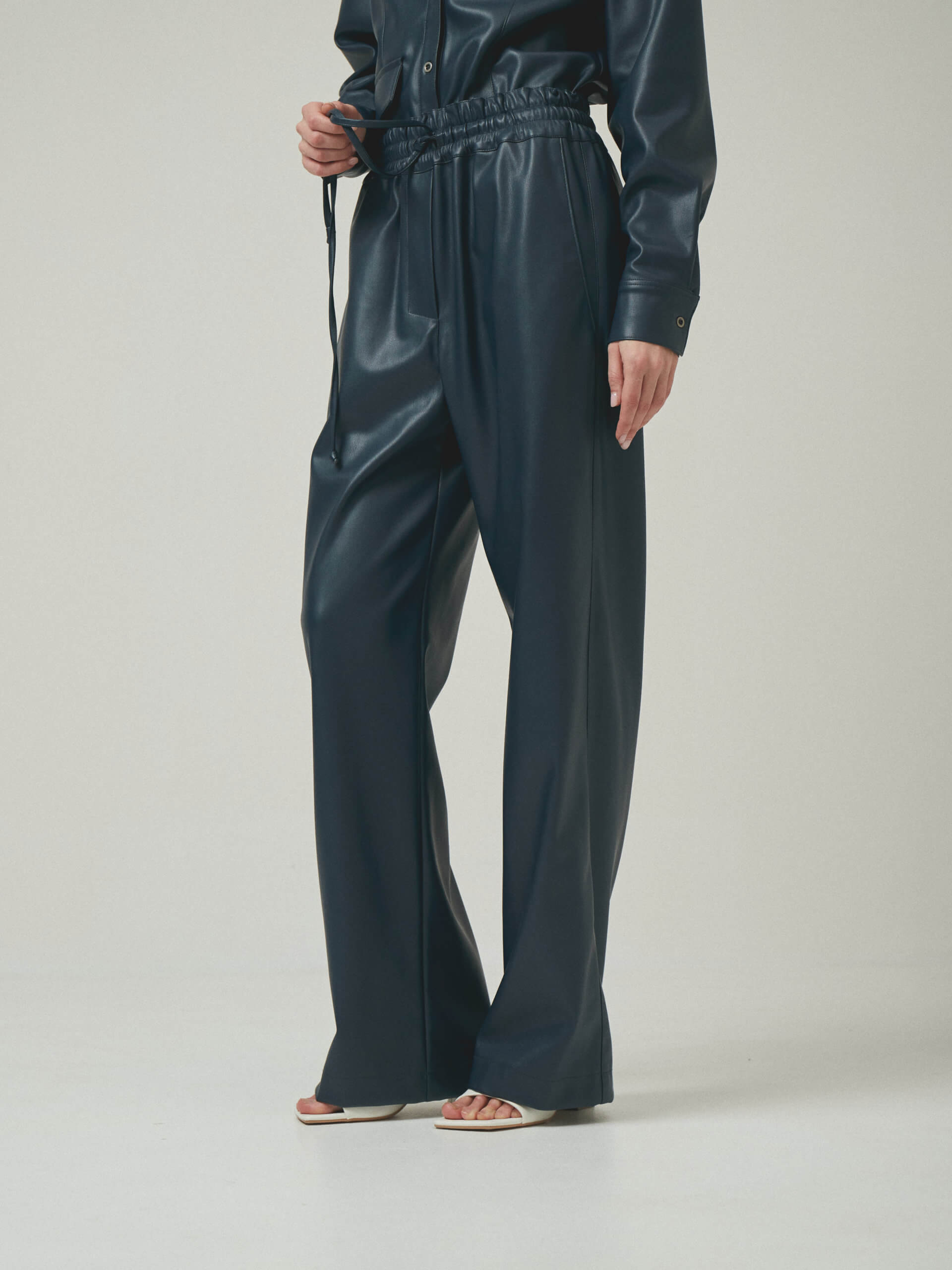 Штани вільного крою з еко-шкіри на резинці