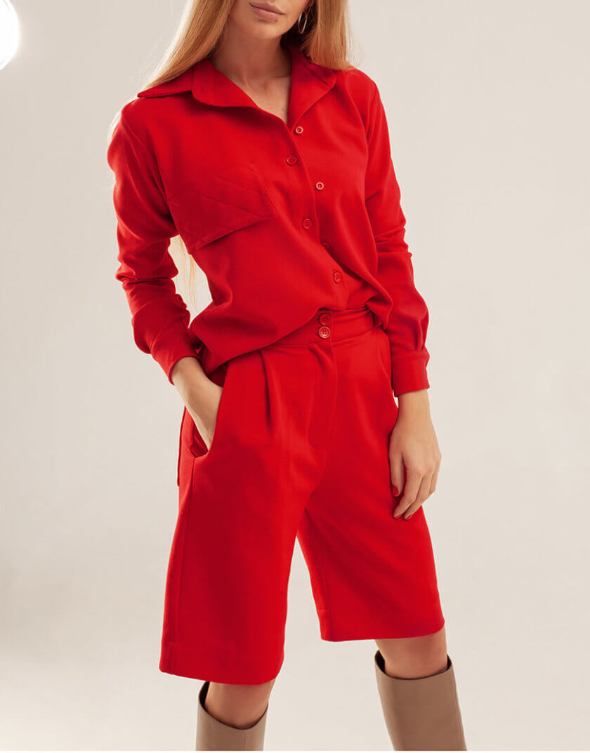 Доставка впродовж 2-5 робочих днівШорти середньої довжини з костюмної тканини садяться на талії. Ззаду пояс на резинці. Є кармани.