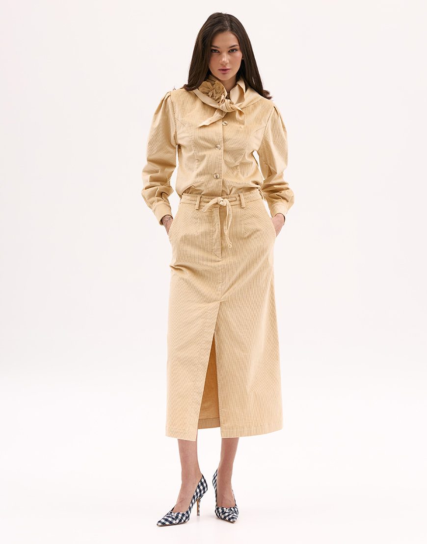 Сорочка з хустиною з вельвету в пісочному кольорі