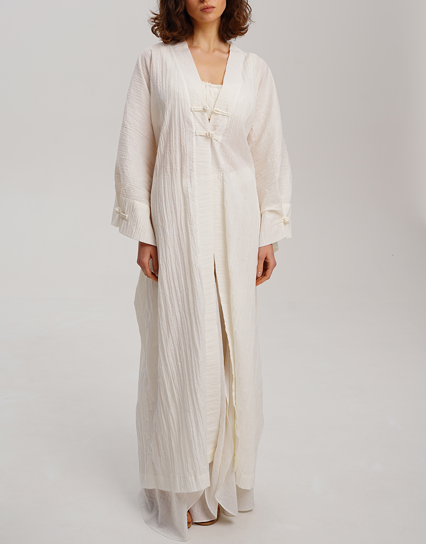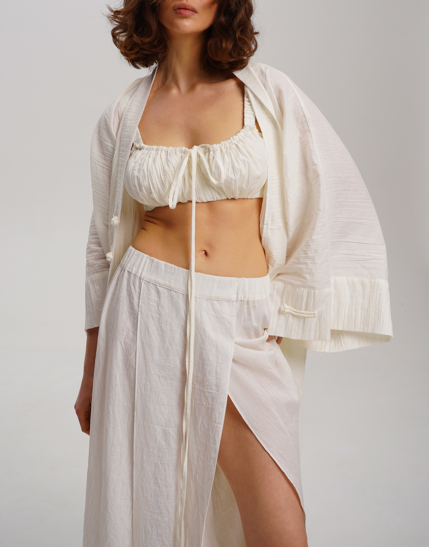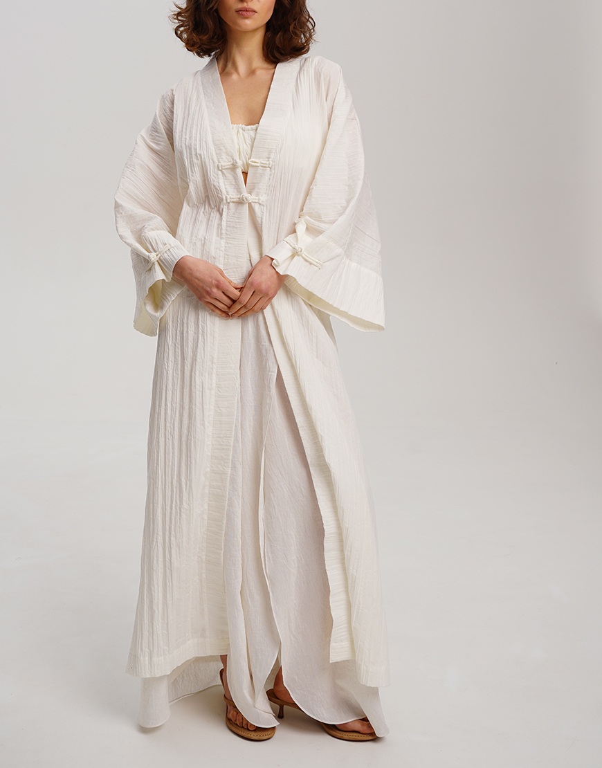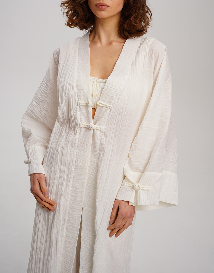Біле кімоно з фактурної бавовни