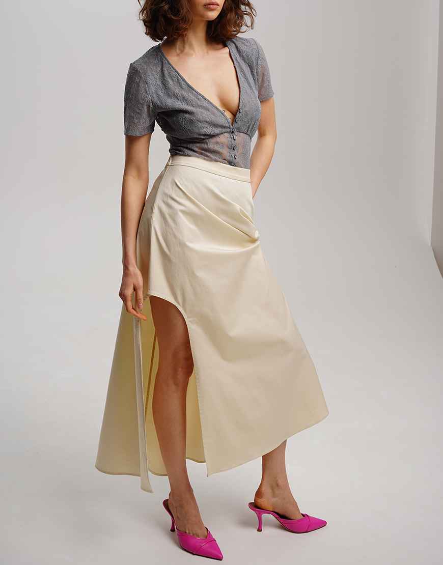 Код товару: 430171Спідниця кльош міді з вирізом збоку