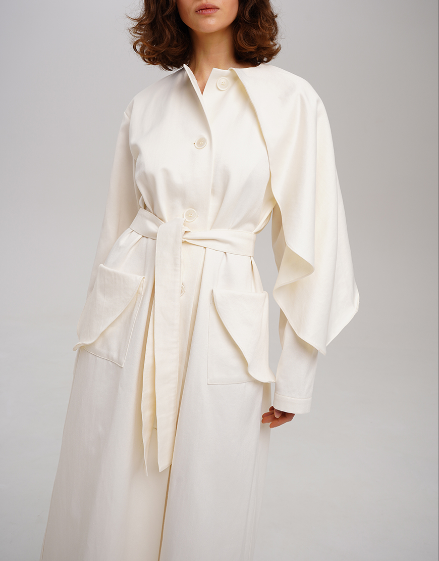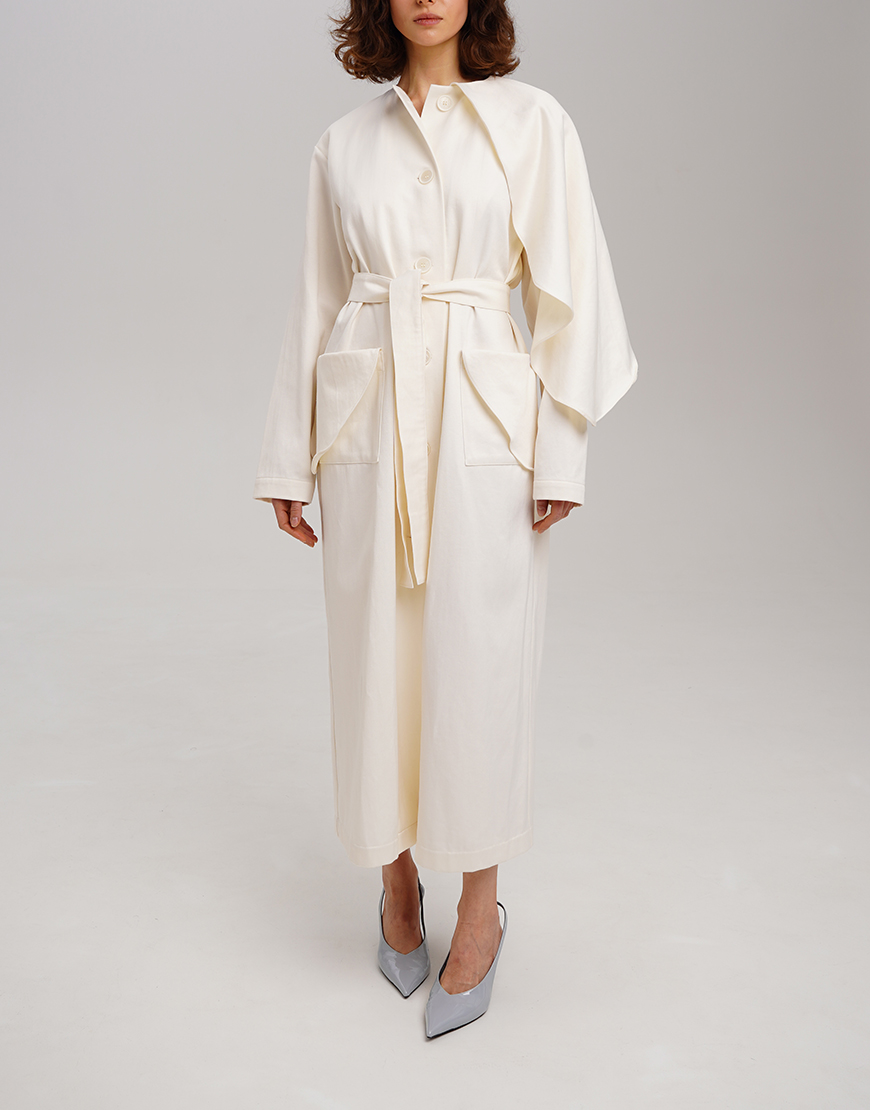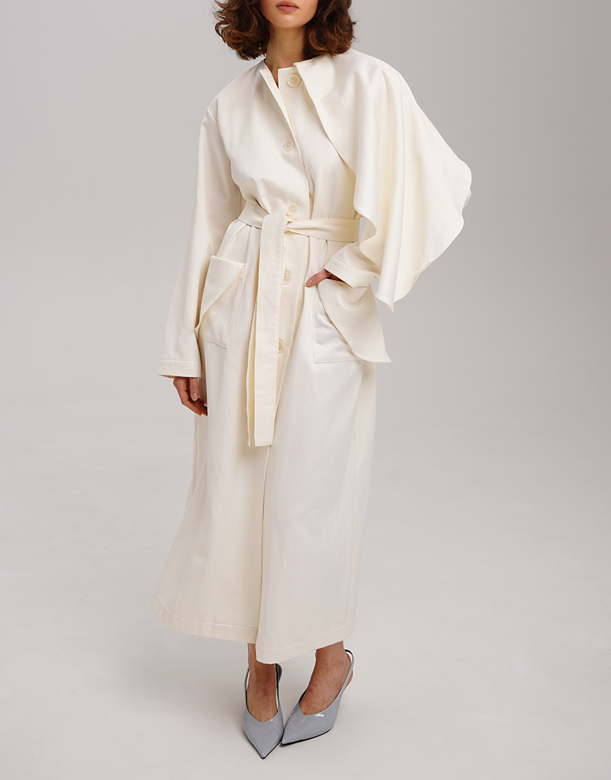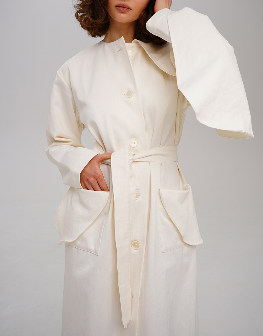 Код товару: 430041Молочна тренч-сукня з бавовни