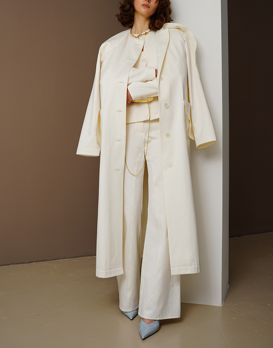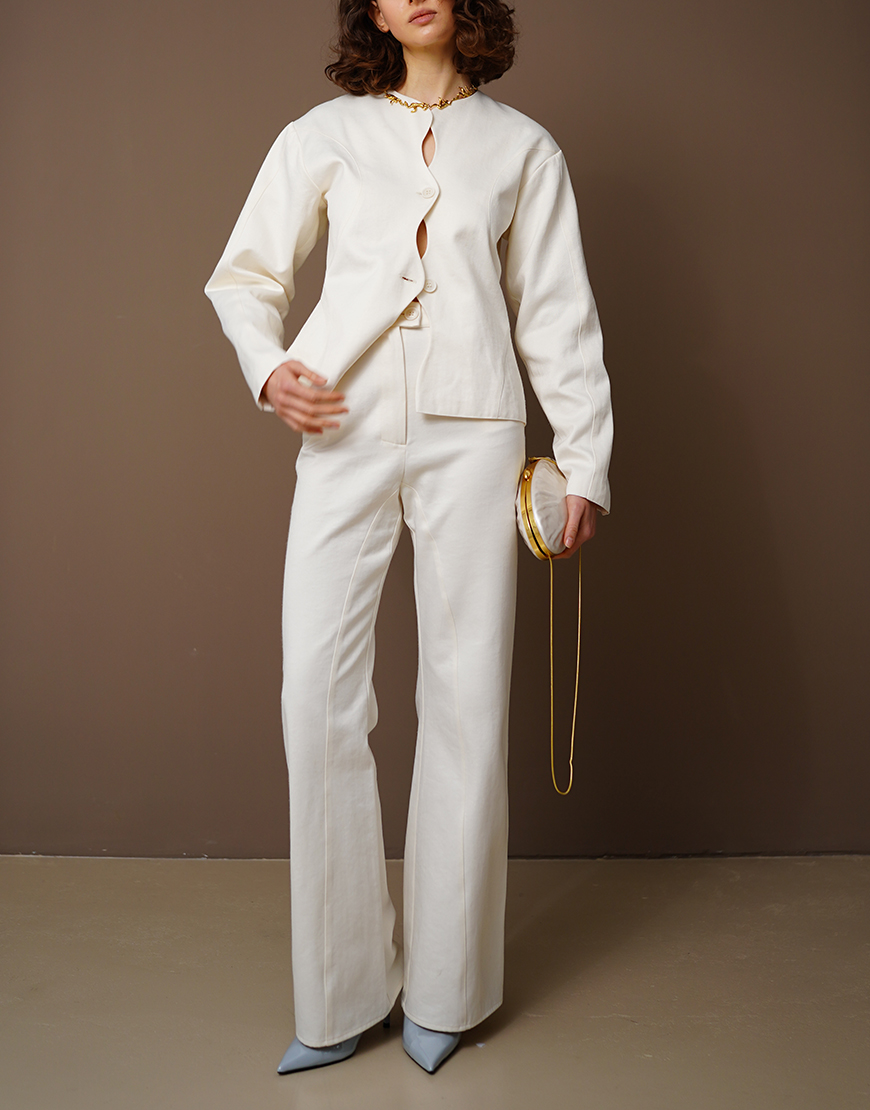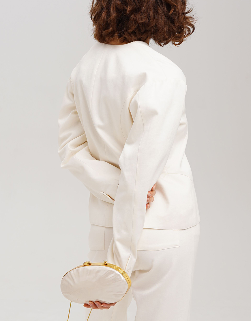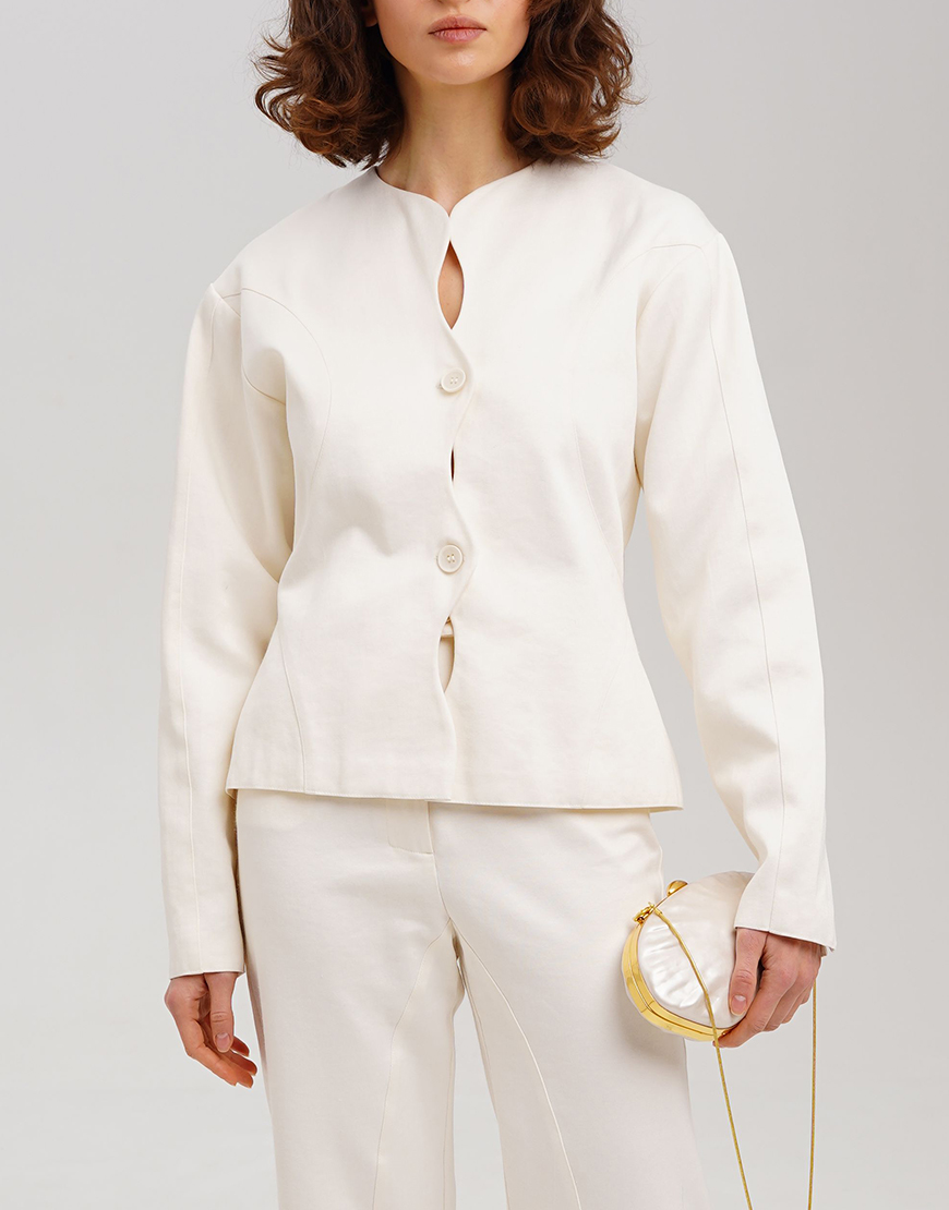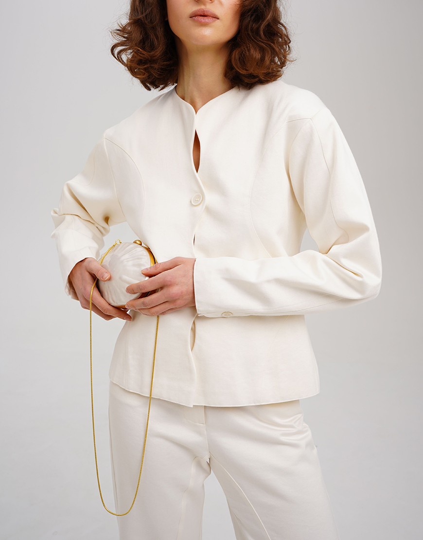 Код товару: 430055Приталений структурний молочний жакет з бавовни