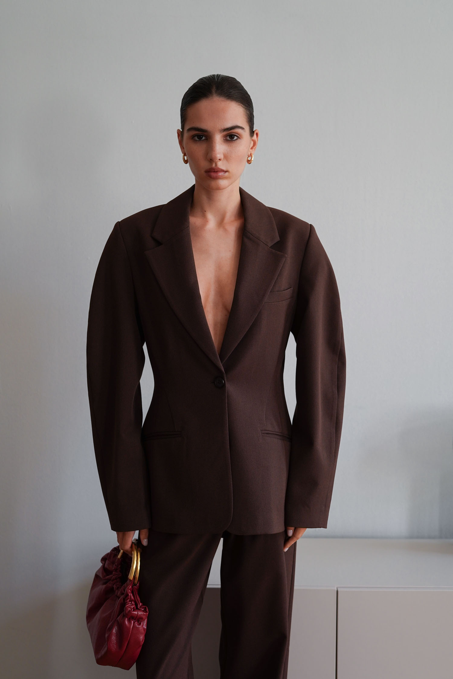 Жакет із об’ємними рукавами шоколадний