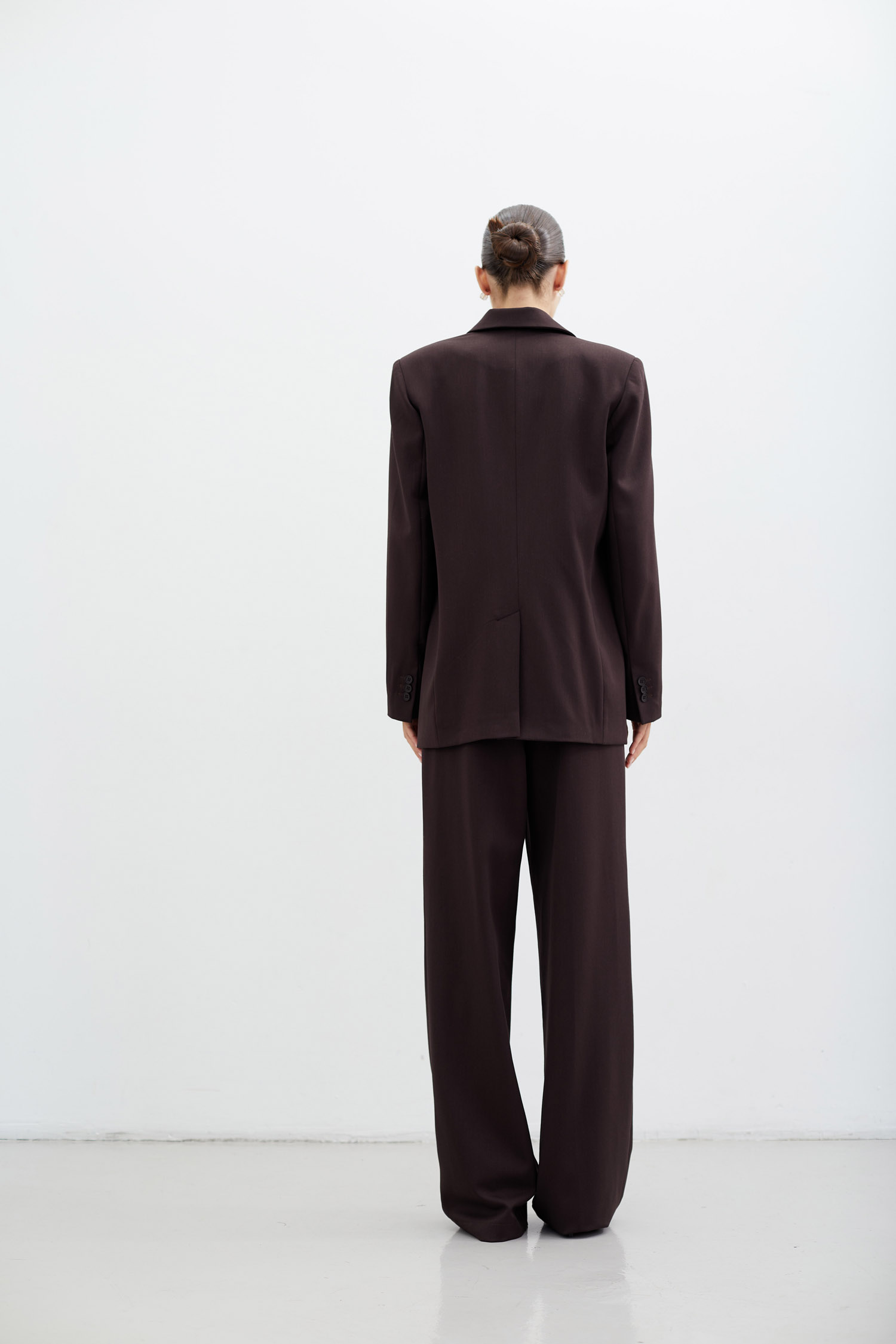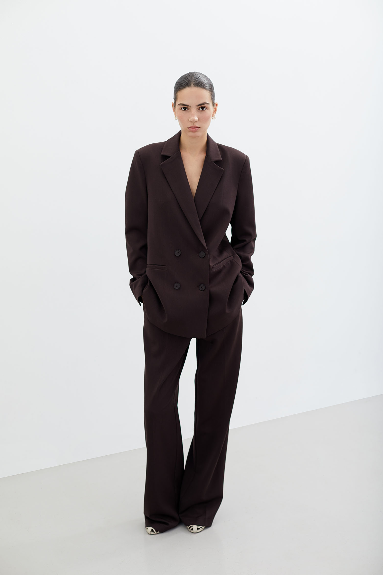 ДоставкаЖакет оверсайз шоколадного кольору пошитий зі щільної костюмної тканини. Має вільний крій.
