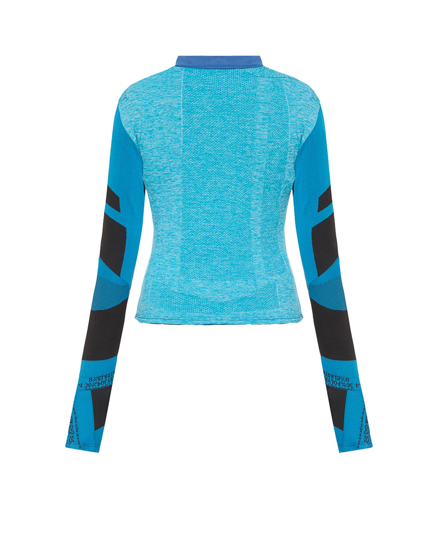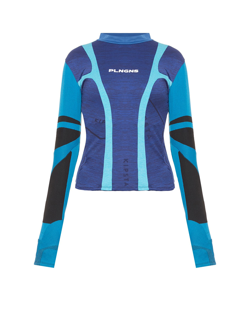 Унікальний жіночий лонгслив PLNGNS, виготовлений з використаних компресійних футболок та рашгардів, повторно зібраних у фірмовому стилі бренду. Приталений жіночий силует підкреслює фігуру, а яскравий принт робить річ акцентною частиною образу. Ця модель брала участь у дебютному шоу колекції “Ain’t it different” в рамках Berlin Fashion Week, де PLNGNS представив повноцінну подіумну колекцію.