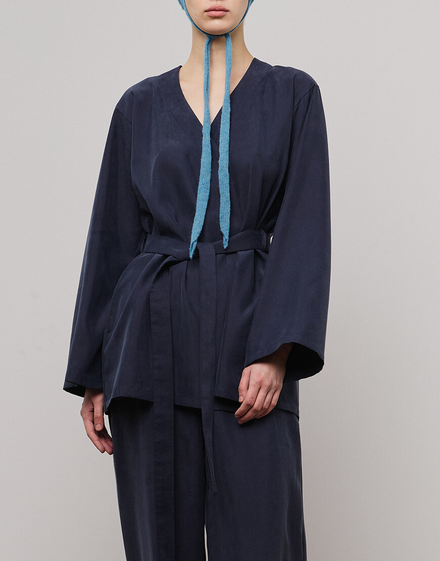 Доставка впродовж 2-5 робочих днівКімоно на запах, під пояс. Має дві кишені, довжина рукава повна.