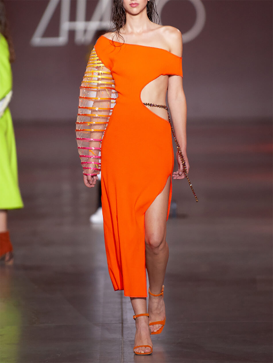 Доставка впродовж 2-5 робочих днівСукня трикотажна з об’ємним рукавом. Рукав виконаний в авторській техніці, є ексклюзивним. Сукня на одне плече, приталеного силуету, добре тягнеться. Довжина міді.