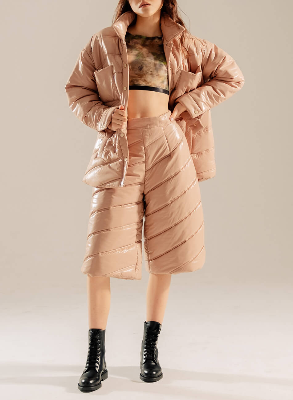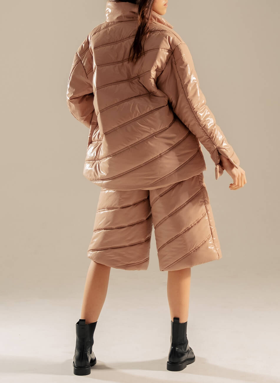 Куртка-пуховик стьобаний на кнопках, over size крою. Рукав довгий. Утеплювач легкий і теплий синтетичний пух.
