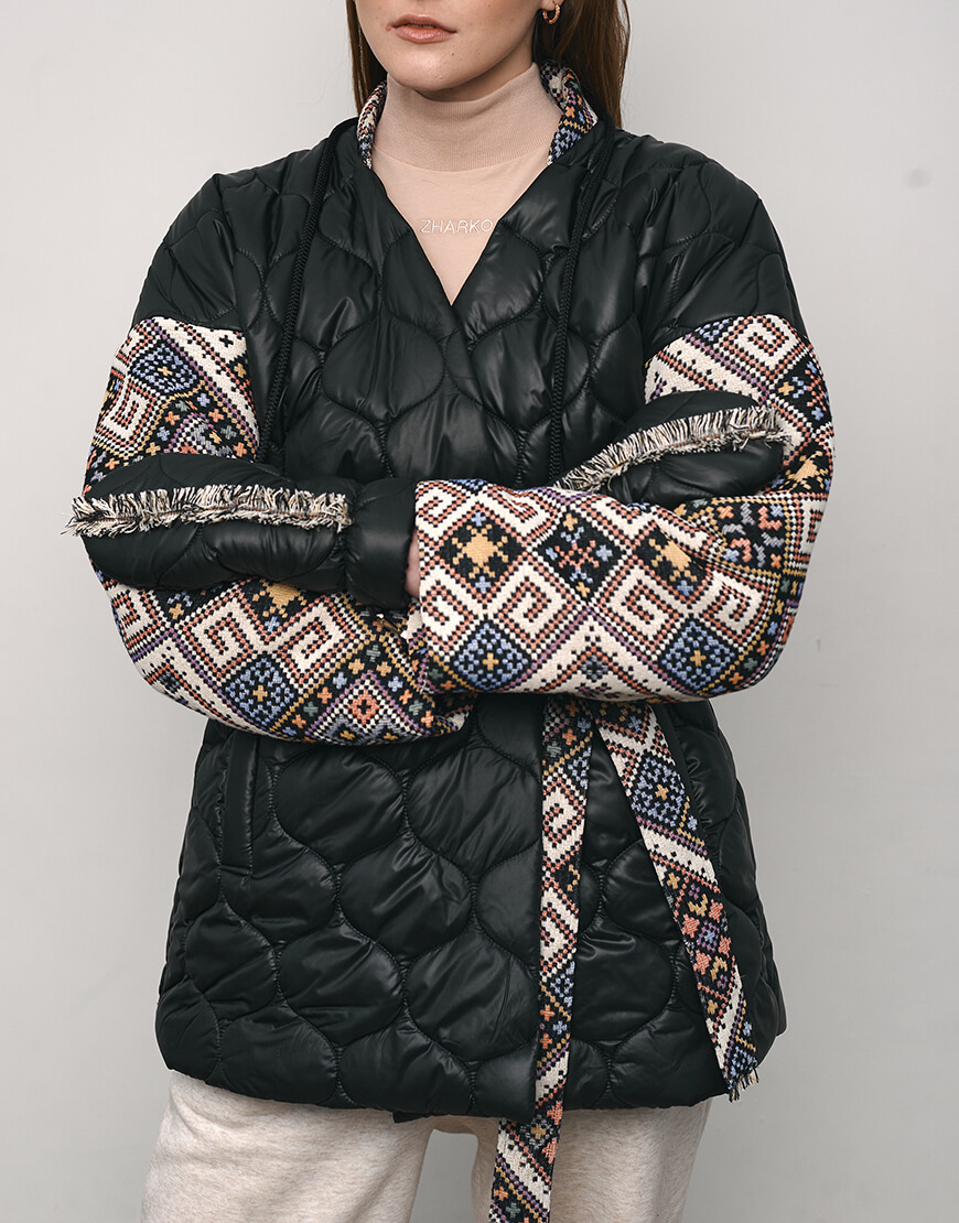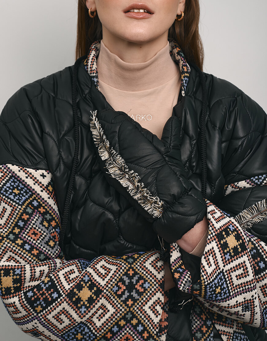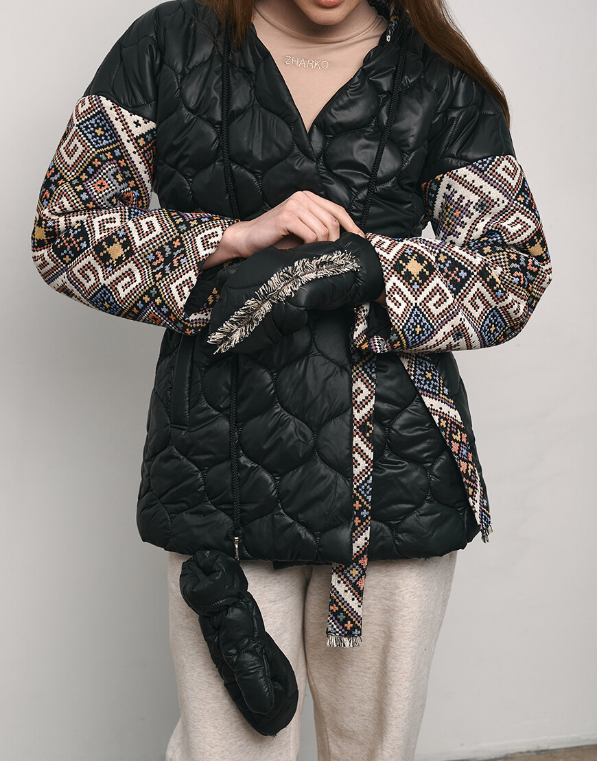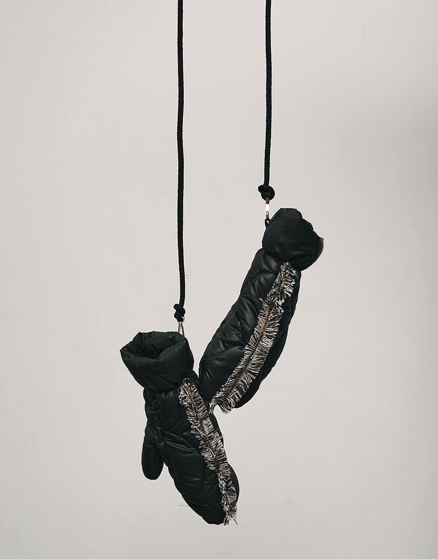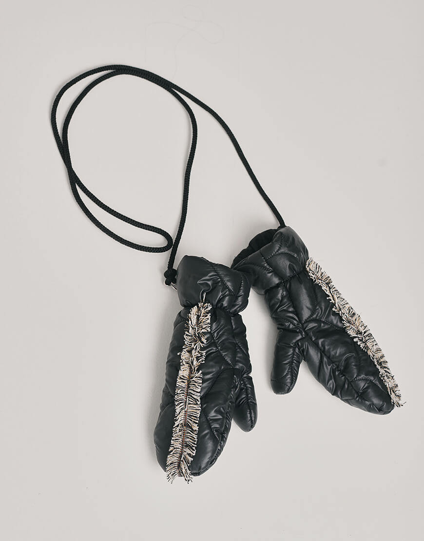 Рукавиці стьобані зі шнурком. Шнурок можна відстібнути. Рукавиці оздоблені бахромою, зробленою вручну. Теплі, наповнювач: синтетичний пух, витримують до -10 градусів морозу.