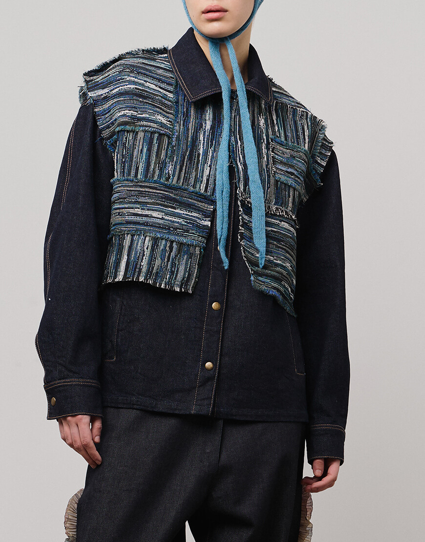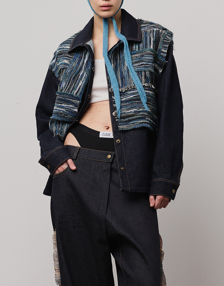 Доставка впродовж 2-5 робочих днівДжинсова куртка over size на кнопках. Зверху одягається жилет з тканної тканини, можна одягати разом або окремо.