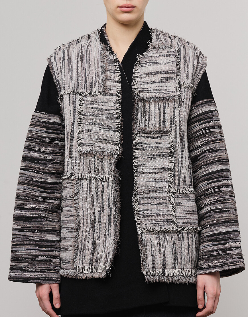 Доставка впродовж 2-5 робочих днівЖилет довгий з тканної тканини виконаний у техніці печворк.
