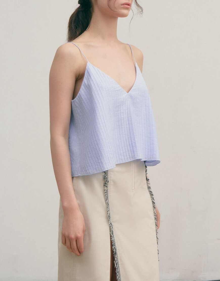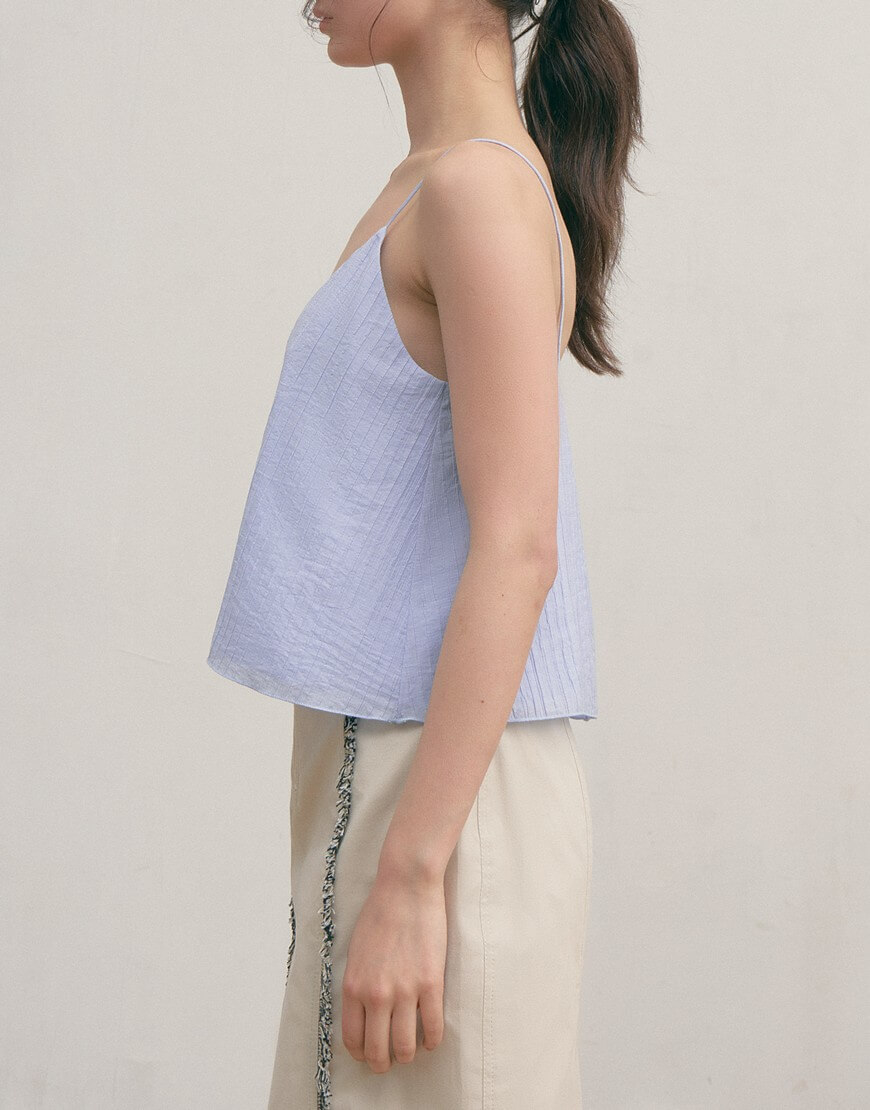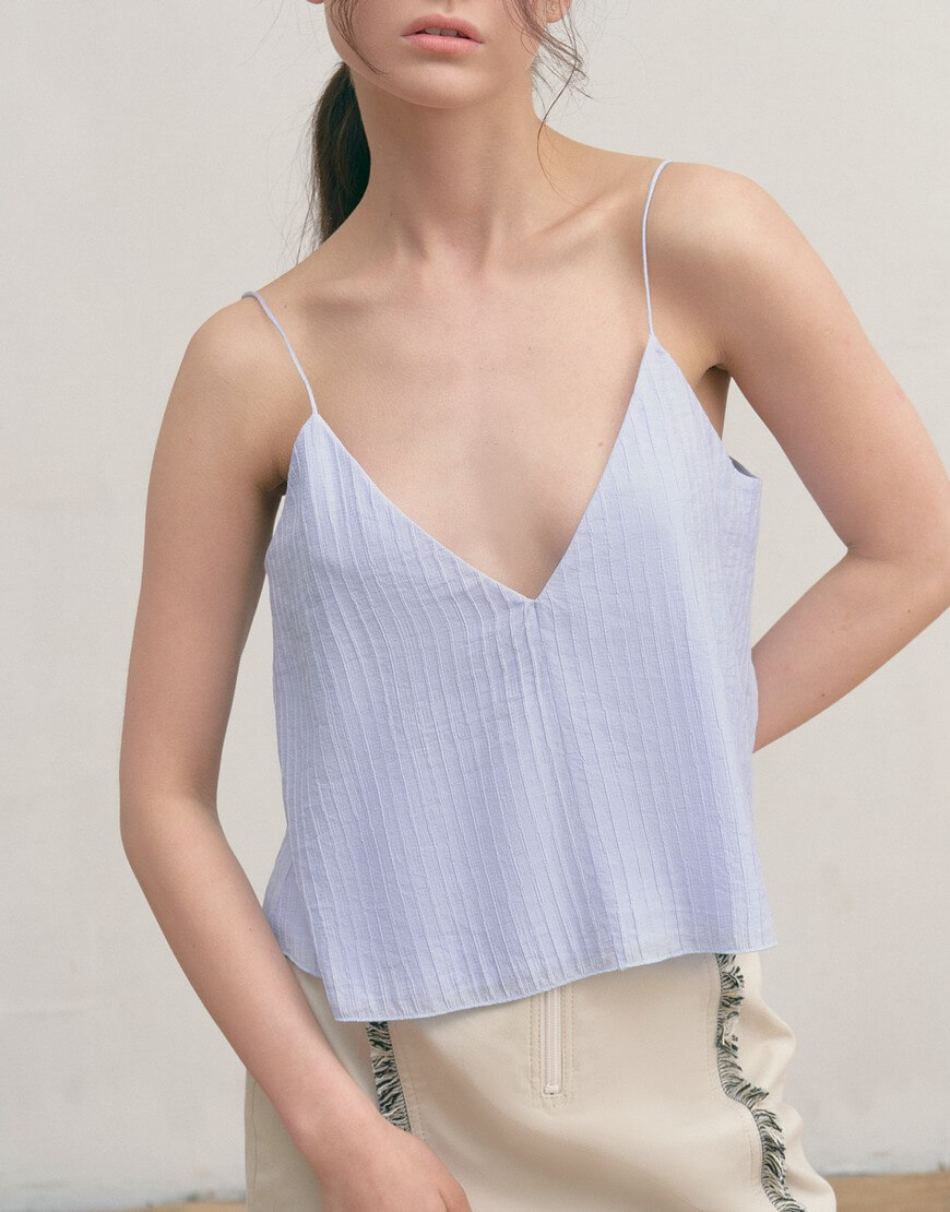 Топ на тонких бретелях з жатої бавовни, двошаровий, не просвічується.