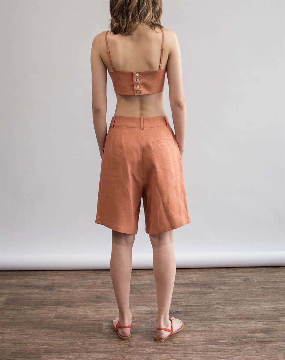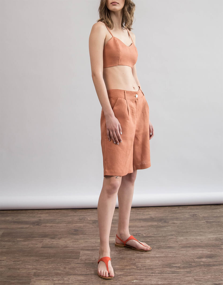 Доставка впродовж 2-5 робочих днівЛляні шорти. Свободного крою, з двома карманами. Застібка: перламутрова ґудзик та блискавка.