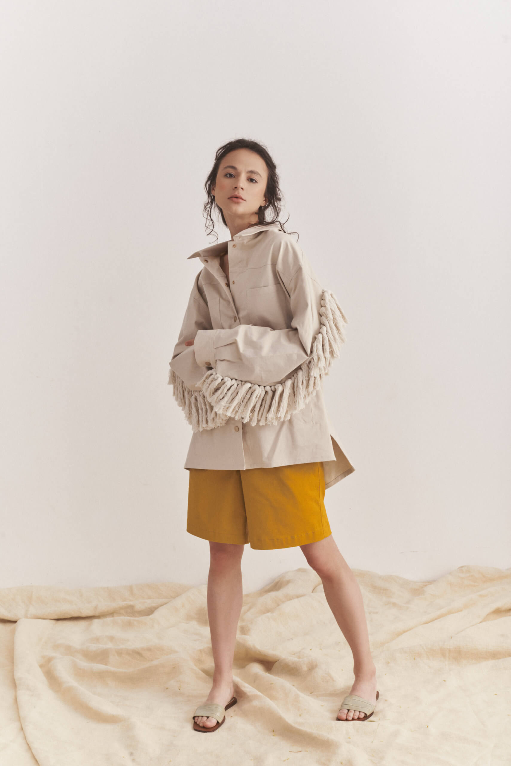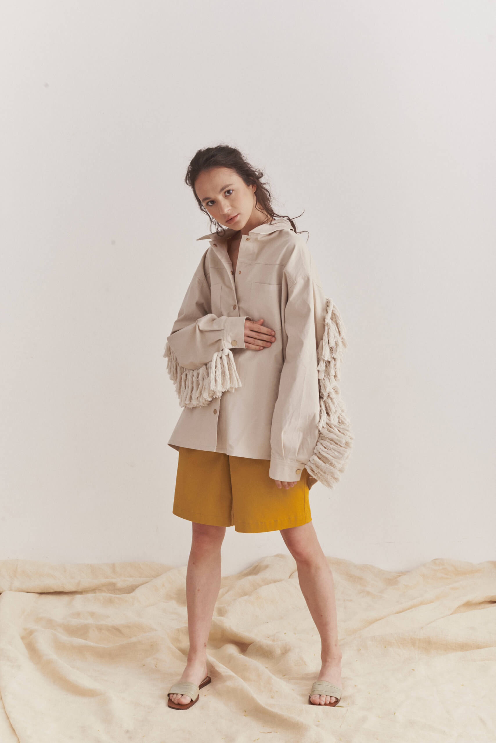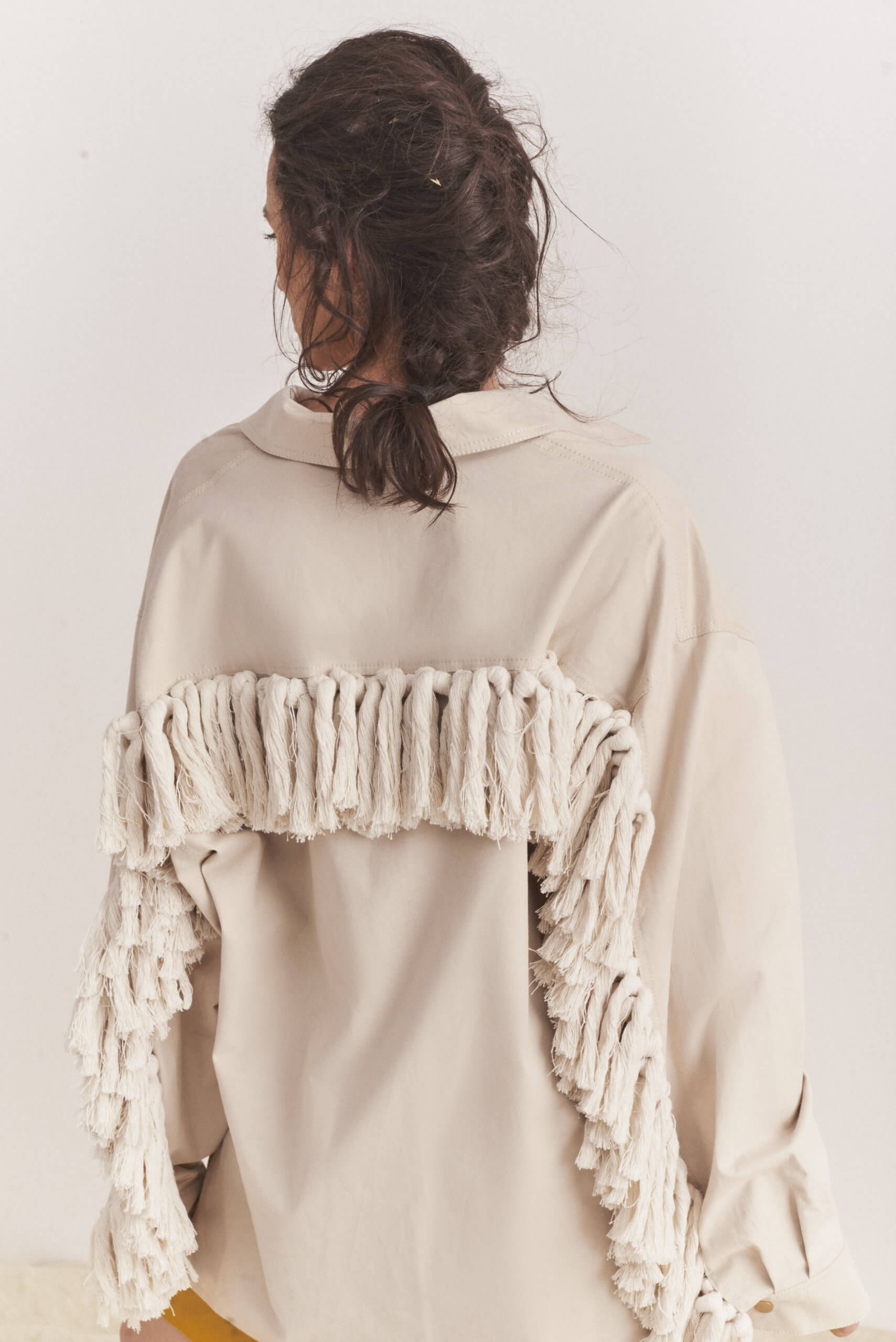 Куртка з бахромою з бавовни. Бахрома зроблена вручну. Куртка прямого силуету на кнопках.