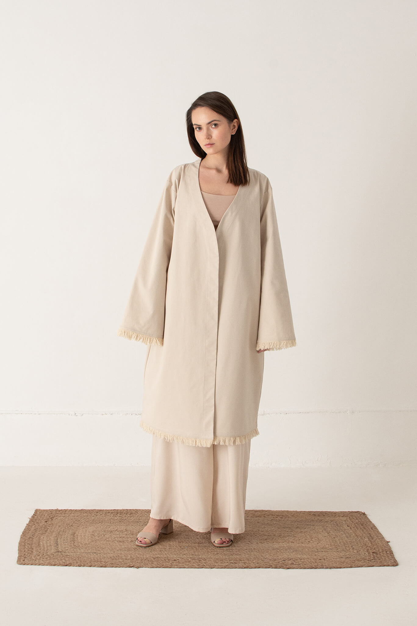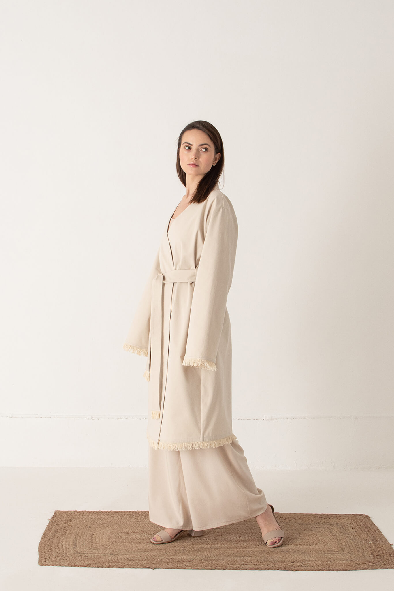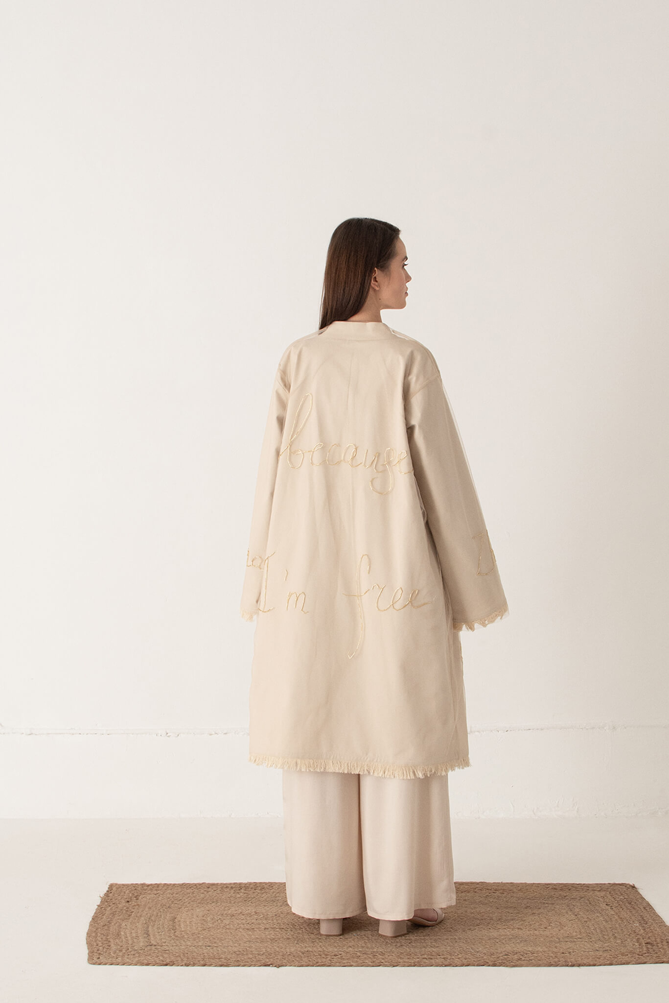 Доставка впродовж 2-5 робочих днівКімоно з ручною вишивкою. Кімоно вільного крою з довгим широким рукавом складається з двох частин: саме кимоно та накидка з фатину з ручною вишивкою бісером. Обидві частини можна носити окремо. Рукава та низ кимоно прикрашені бахромою.