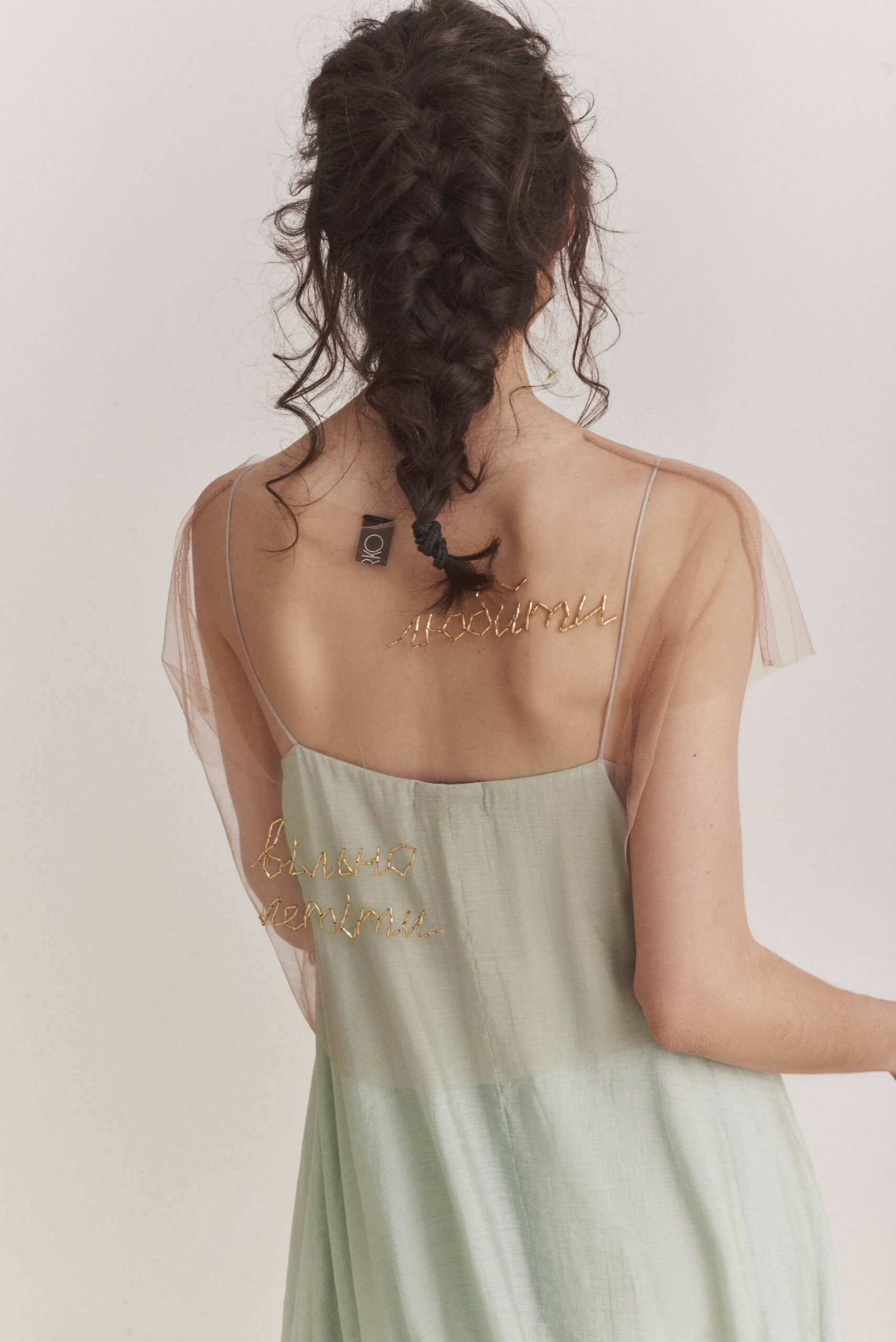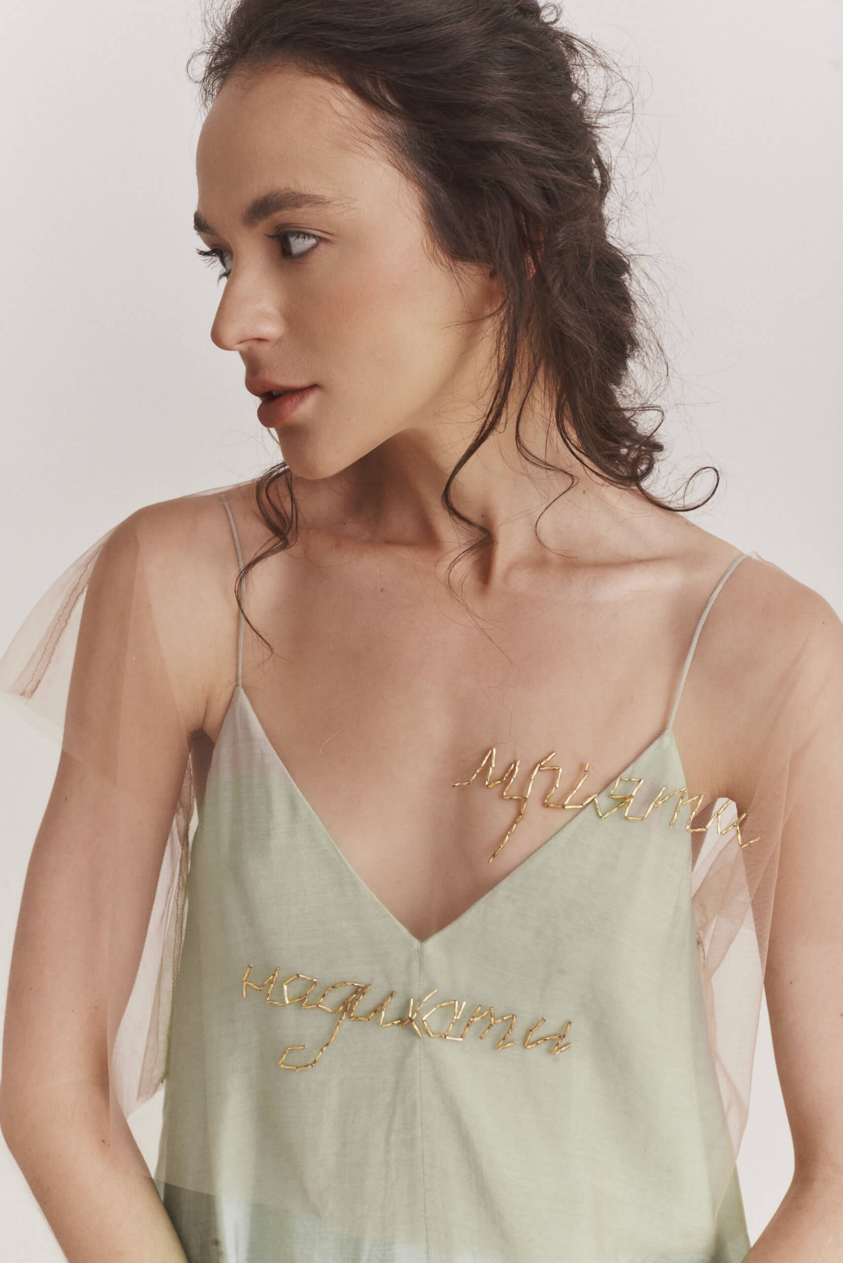 Накидка з ручною вишивкою бісером. Накидка з тонкого напівпрозорого м’якого фатину, прямого силуету
