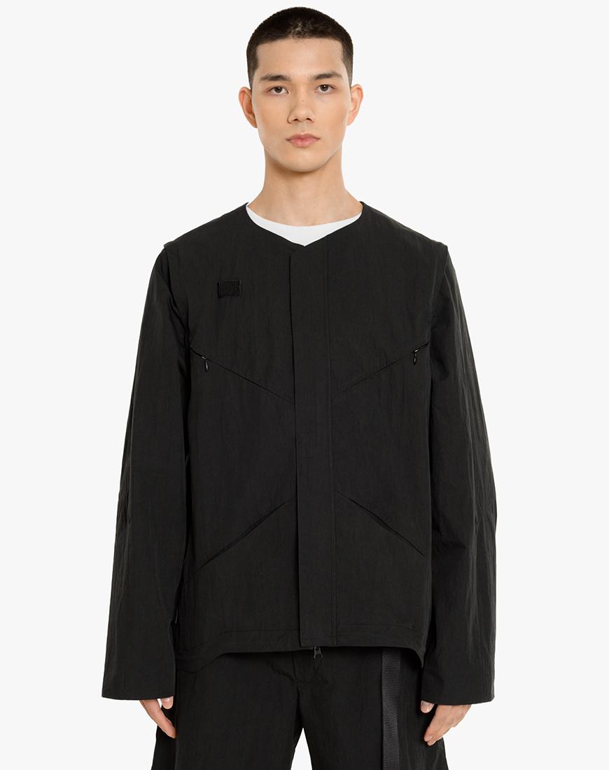Куртка-жилет Tilt — це багатофункціональний елемент гардероба, створений за принципами адаптивного дизайну. Модель вільного силуету легко трансформується завдяки зйомним рукавам на блискавках, що дозволяє використовувати виріб як повноцінну куртку або як функціональний жилет. Конструкція передбачає розвинену систему зберігання: дві верхні та дві нижні накладні кишені, бокові кишені для рук, а також два додаткові відділення позаду. Особливістю моделі є щільні текстильні стрічки на грудях для фіксації окулярів та широка стропа на спині для кріплення спорядження. Нижній край виробу оснащений системою затяжок для регулювання об’єму та зміни силуету.