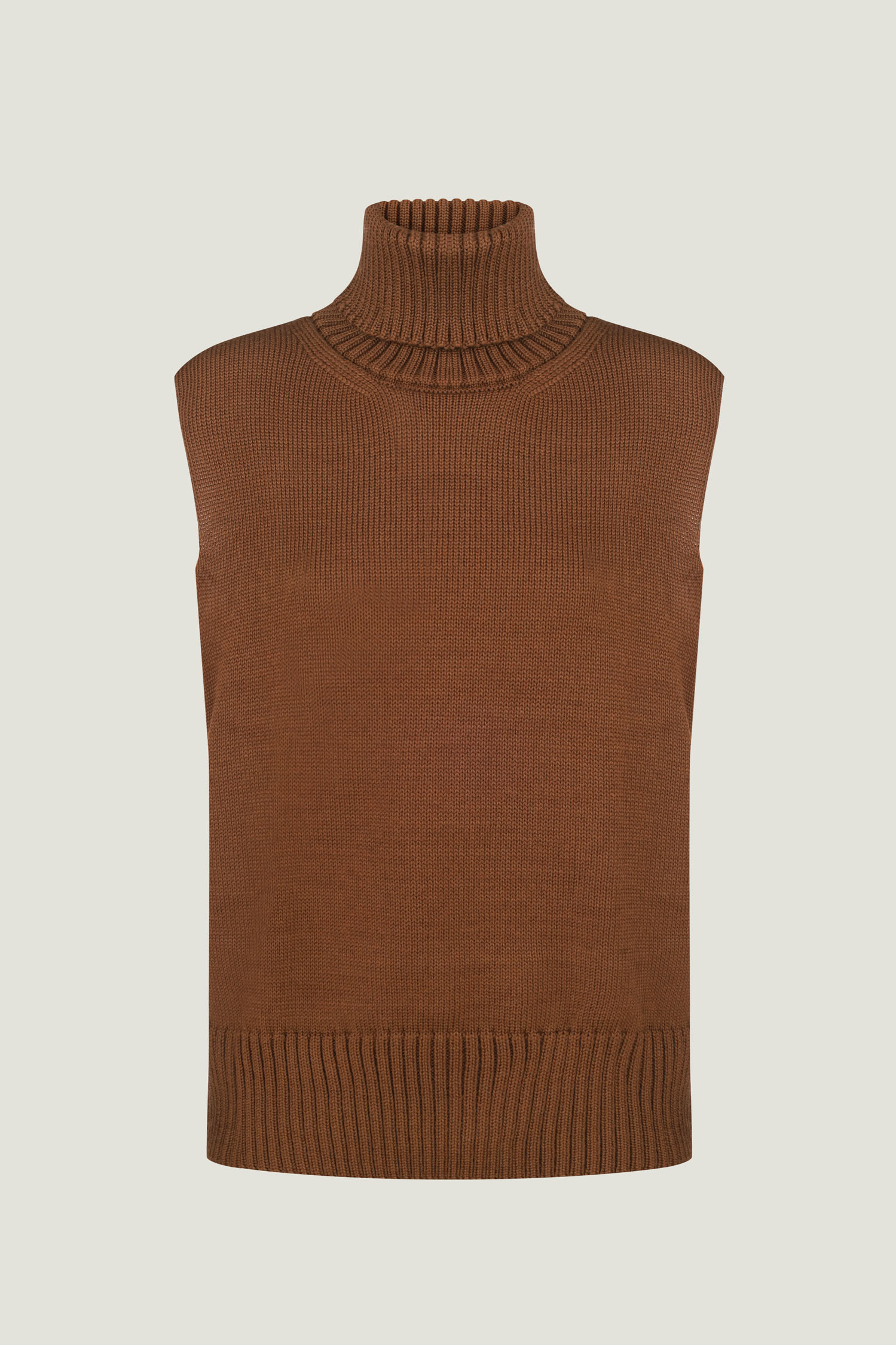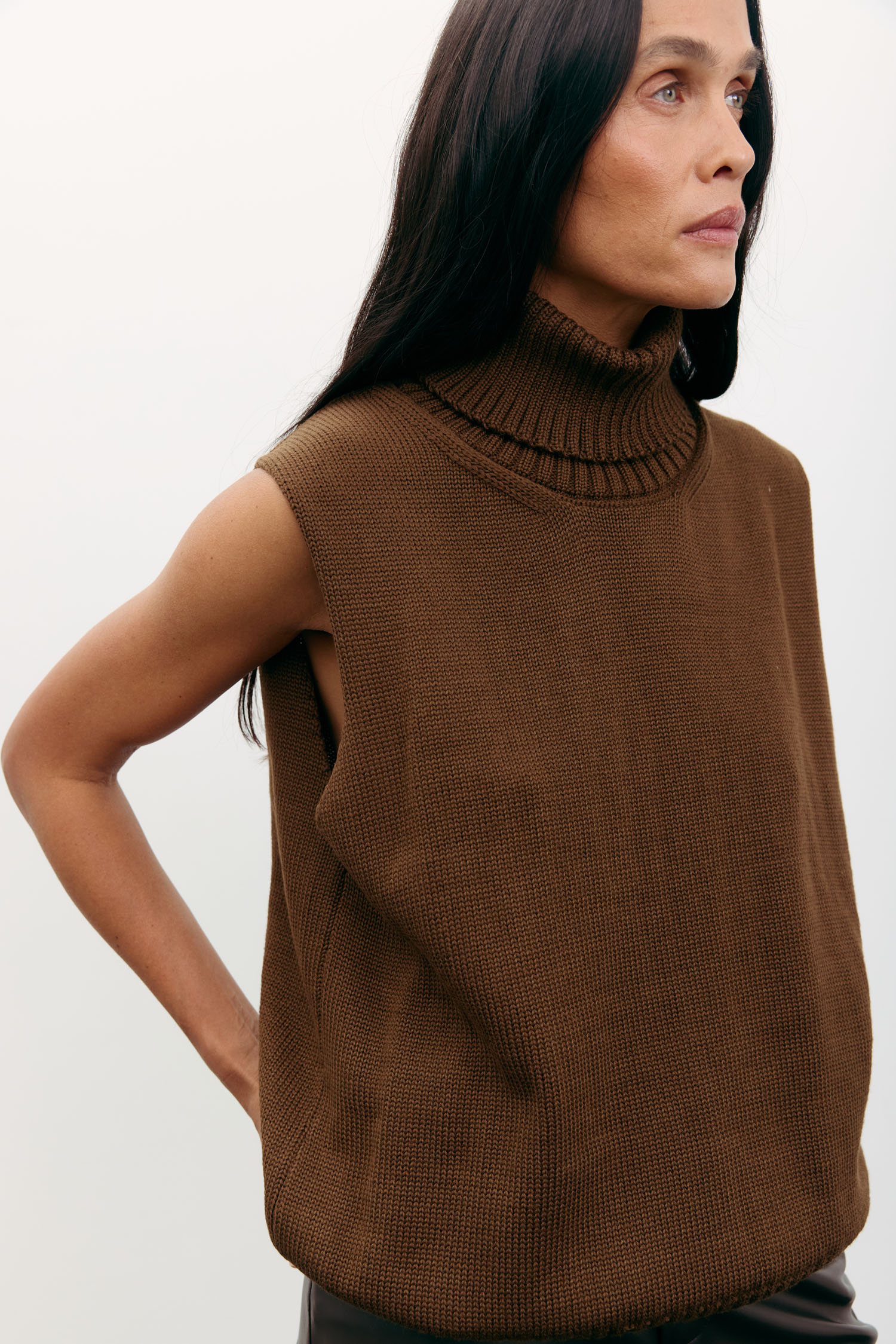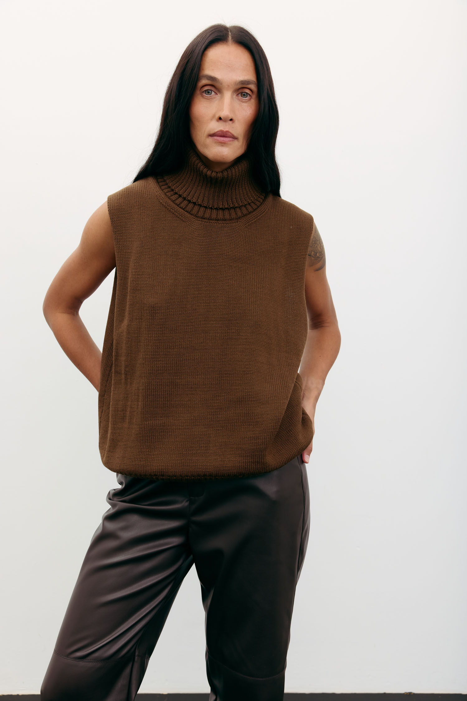 ДоставкаЖіночий шоколадний жилет із напіввовняної пряжі.